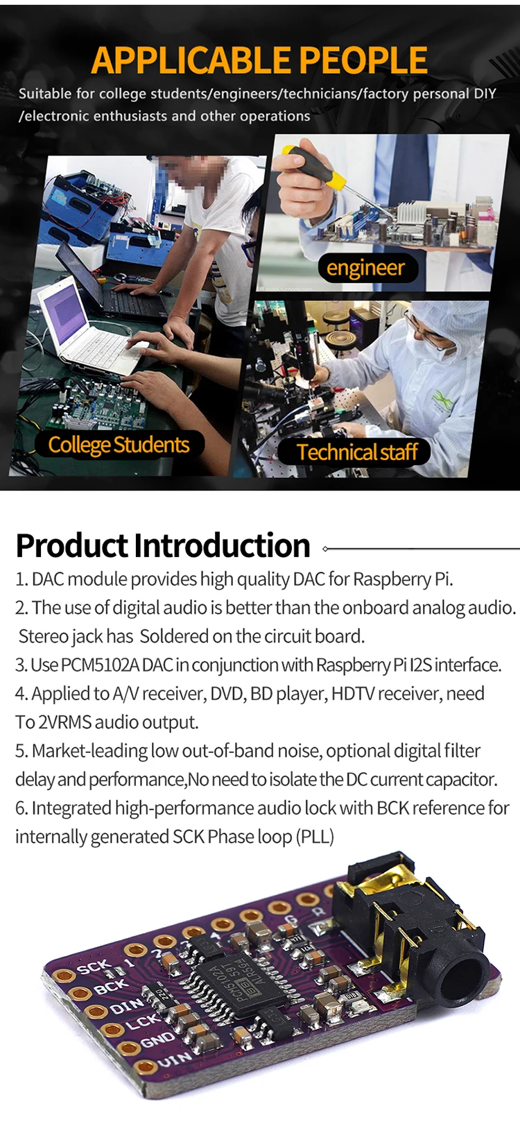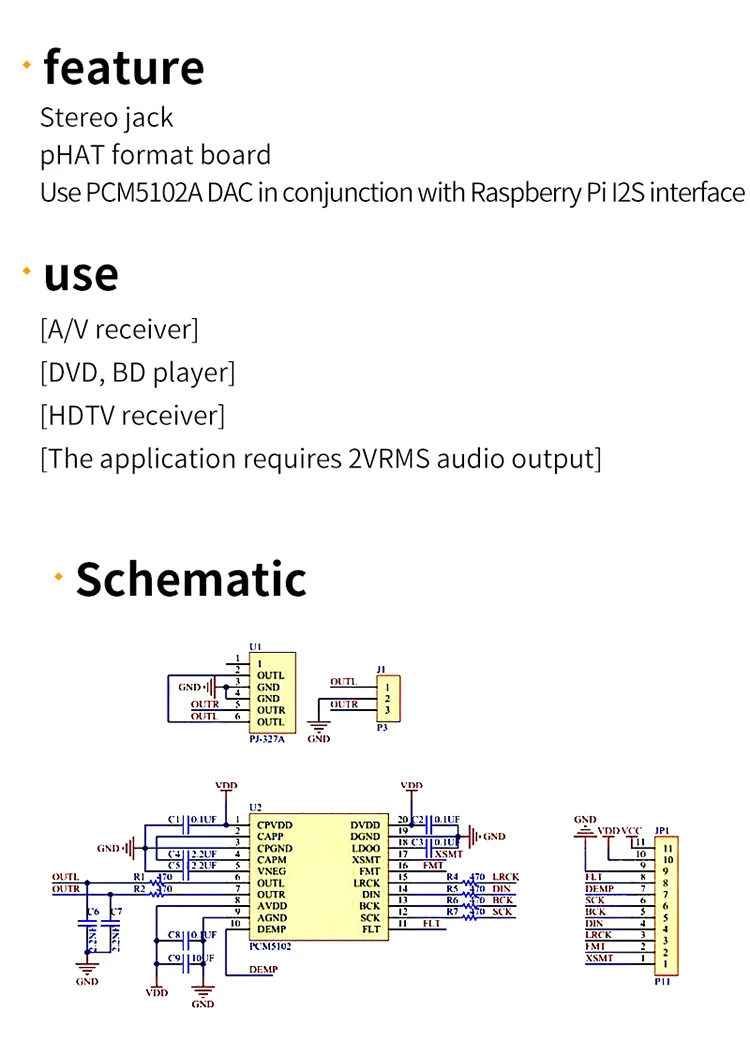 PCM5102A DAC Decoder GY-PCM5102 I2S Player Module pHAT Format Board Digital PCM5102 Audio Board I2S Interface For Raspberry Pi