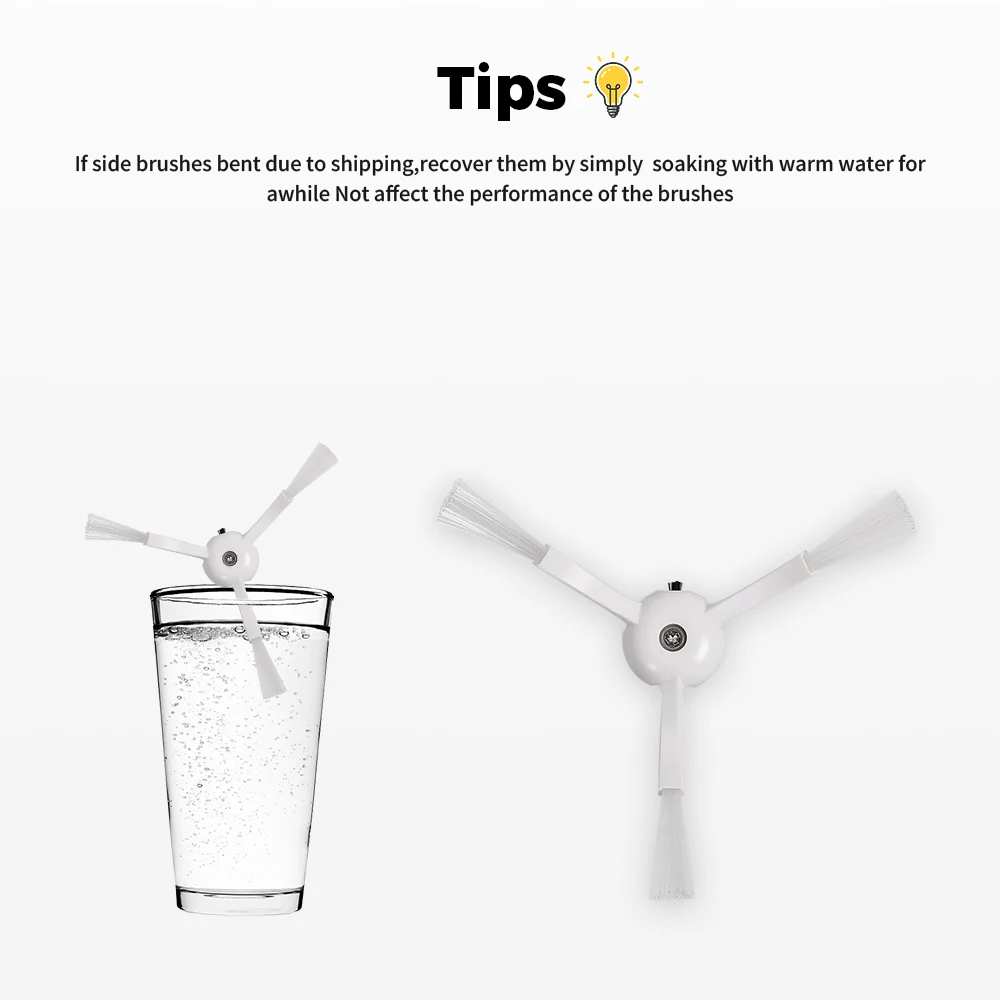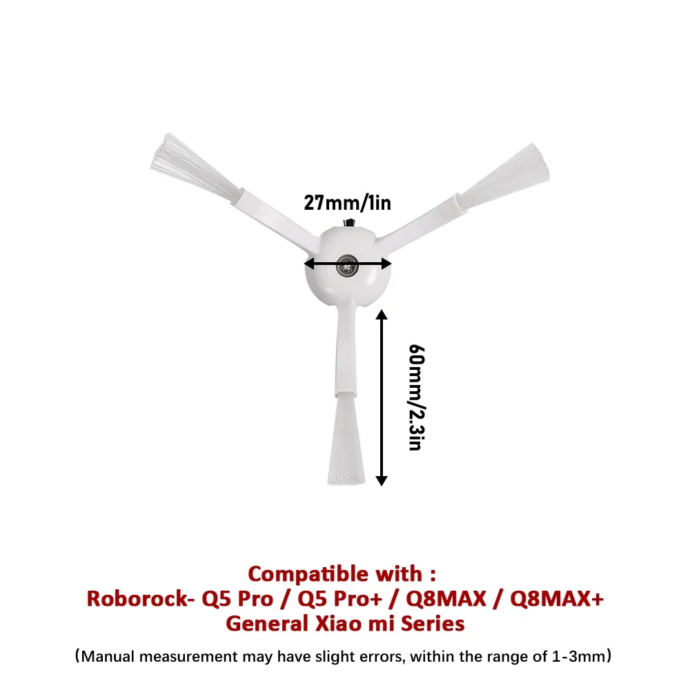 1. Side brushes are easy to remove and replace as part of routine maintenance.2. For best results, side brush should be replaced every 2 - 3 months.*Adapting model:For Roborock Q5 Pro, Q5 Pro+, Q8 Max, Q8 Max+/T8 /S5 S6 S5MAX S50 S60 S7 Max S8 Pro Ultra E4 E5For Xiaomi Mi Robot Vacuum 1 / 1SNote: Light shooting and different displays may cause the color of the item in the picture a little different from the real thing. The measurement allowed error is +/- 1-3cm.
