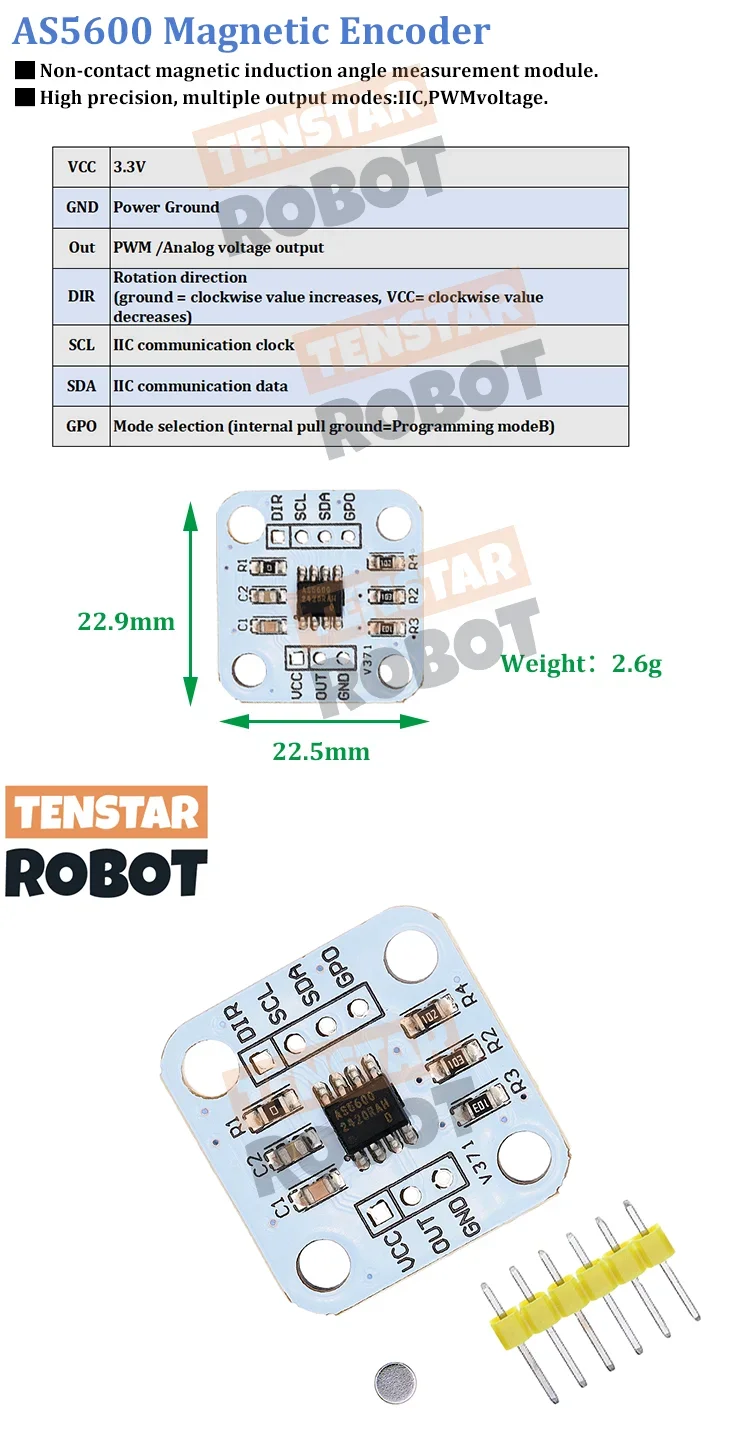 Tenstar AS5600 Magnetic Encoder Induction Angle Measurement Sensor Module 12bit High Precision