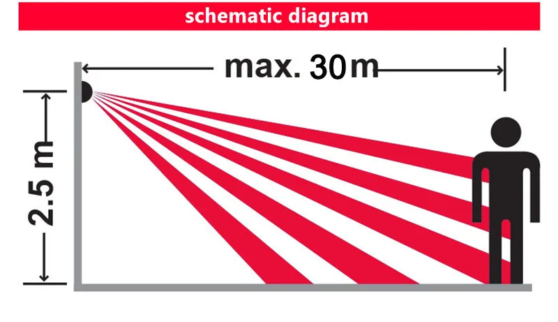 10. The maximum induction distance of 30 meters refers to the maximum detection distance of the infrared induction element. In actual use, the actual detection distance may not reach 30 meters due to the environmental temperature, installation method, the position of the detected object, cold and hot air flow and other factors.