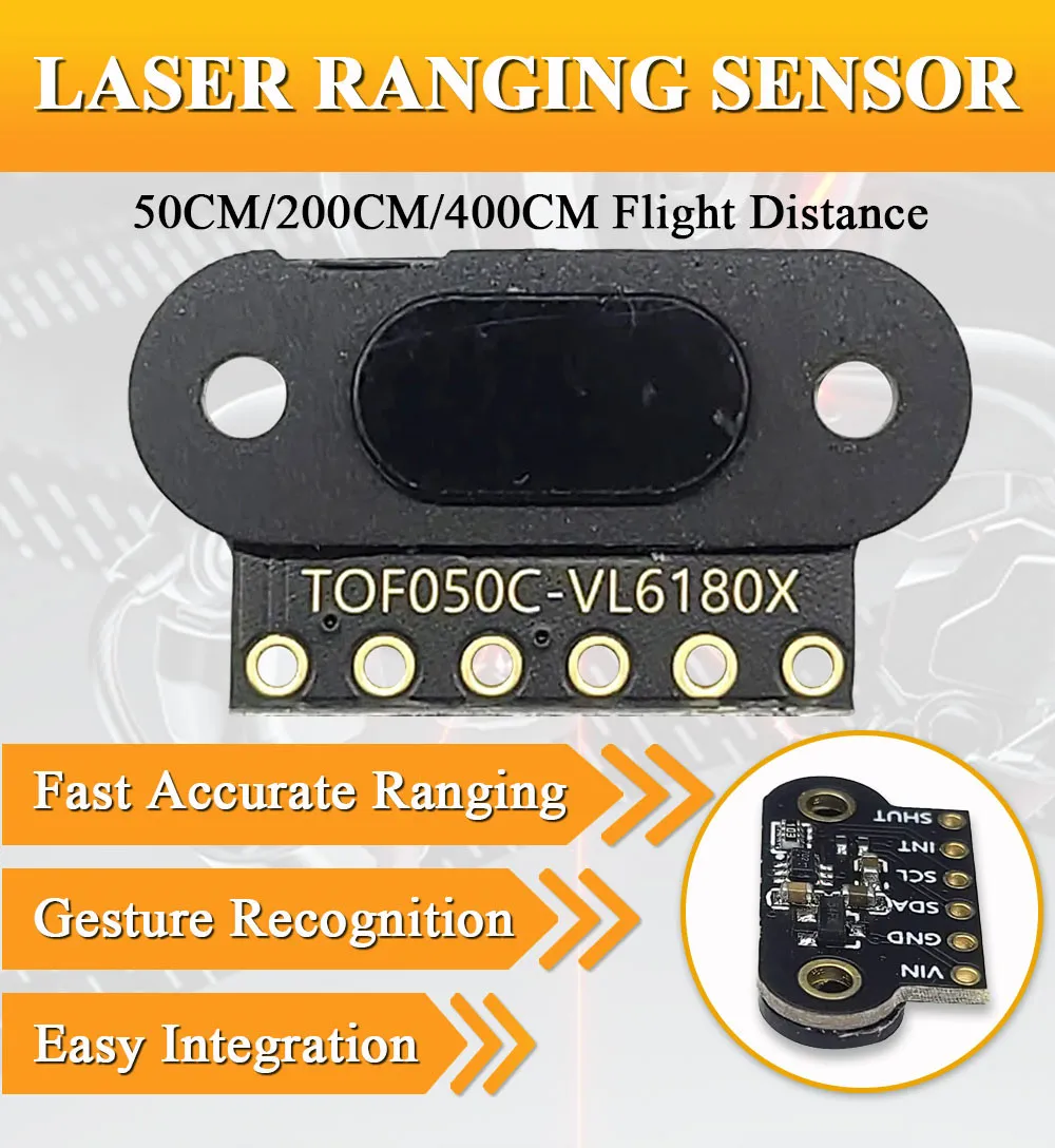 (855) I-BUY-ROBO (855) 428-9762Laser Ranging Sensor Module for Arduino STM32 Measure Flight Distance 50CM 200CM 400CM I2C Output TOF050C TOF0200C TOF0400C