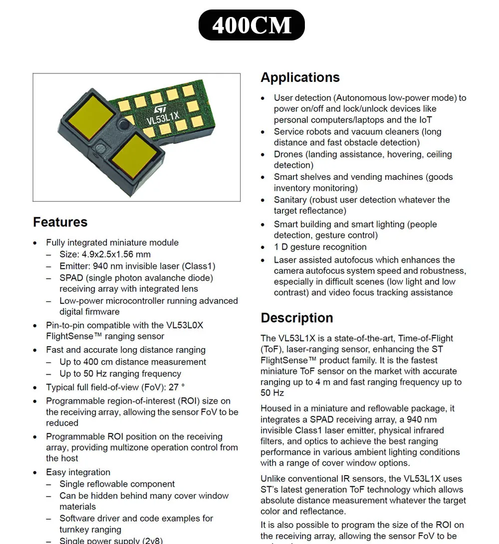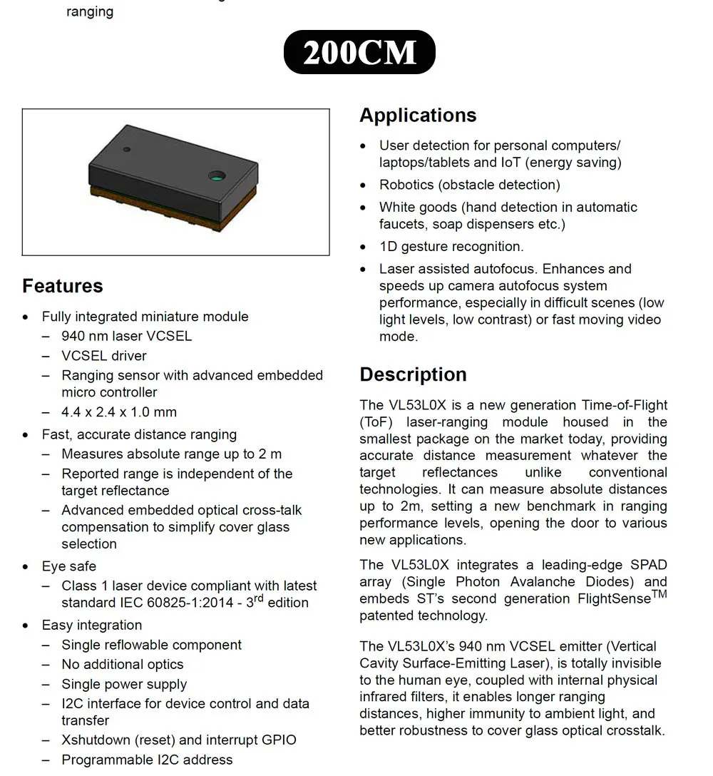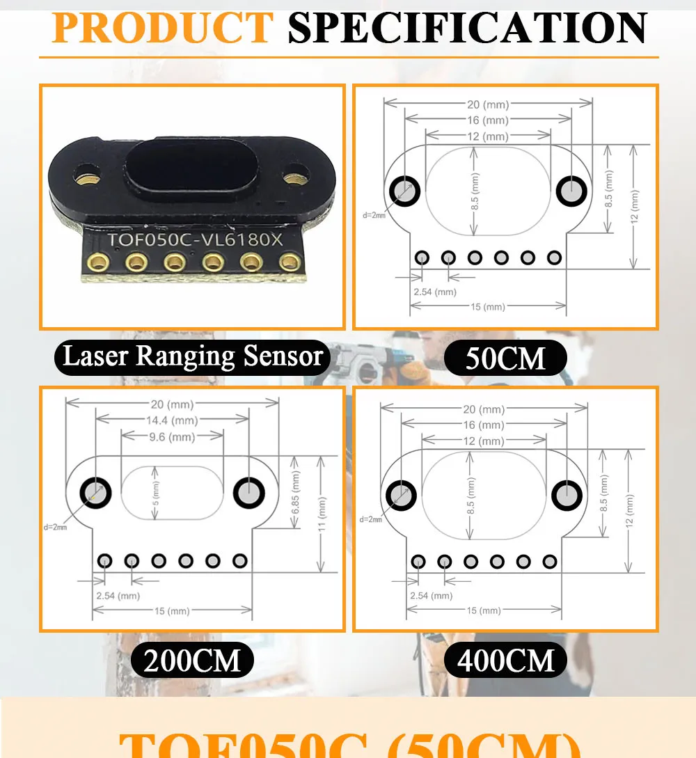 Laser Ranging Sensor Module for Arduino STM32 Measure Flight Distance 50CM 200CM 400CM I2C Output TOF050C TOF0200C TOF0400CNoteThe 3 types of chips are not the same, please pay attention to the choice. The main picture is for reference only!!!