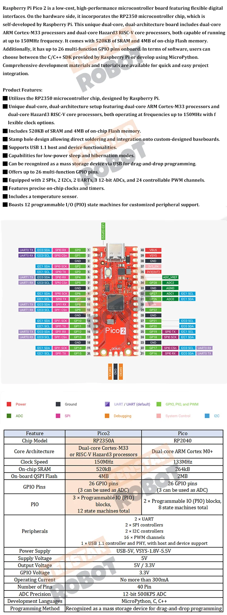 Tenstar RP2350 Red Board PICO2 Development Board TYPE-C USB RP2350A Chip Microcontroller Compatible With Raspberry Pi Pico 2