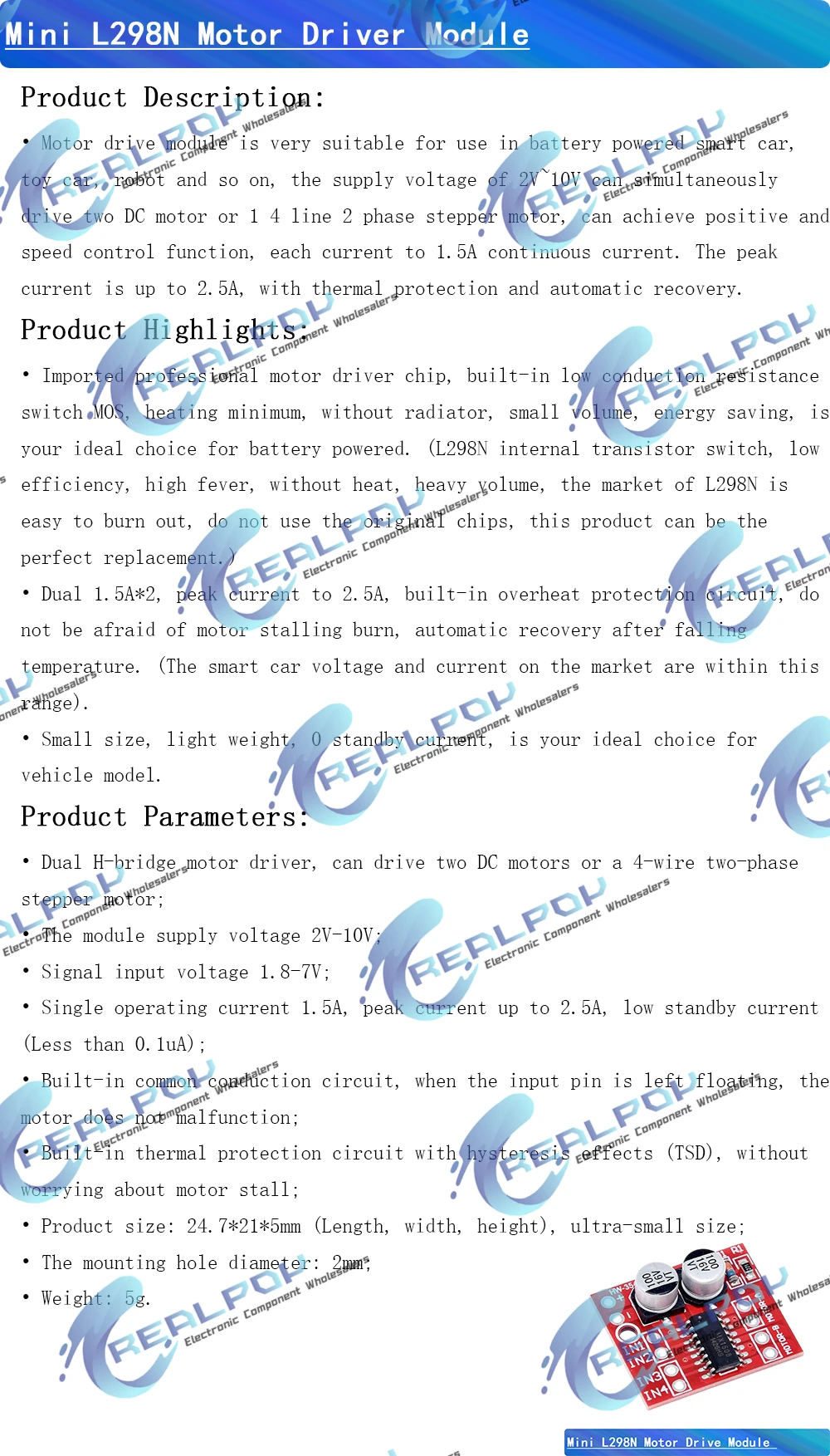 Mini-L298N L298N driver board module L298 stepper motor smart car robot breadboard peltier High Power
