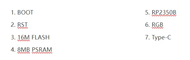 【Product Display】RP2350B Linux Mini BoardDesigned based on Raspberry Pi RP2350Version selectionResource Introduction Pin DefinitionProduct sizePackage Contains[] RP2350B-MINI-A-No-PSRAM x1[] RP2350B-MINI-A-With-PSRAM x1