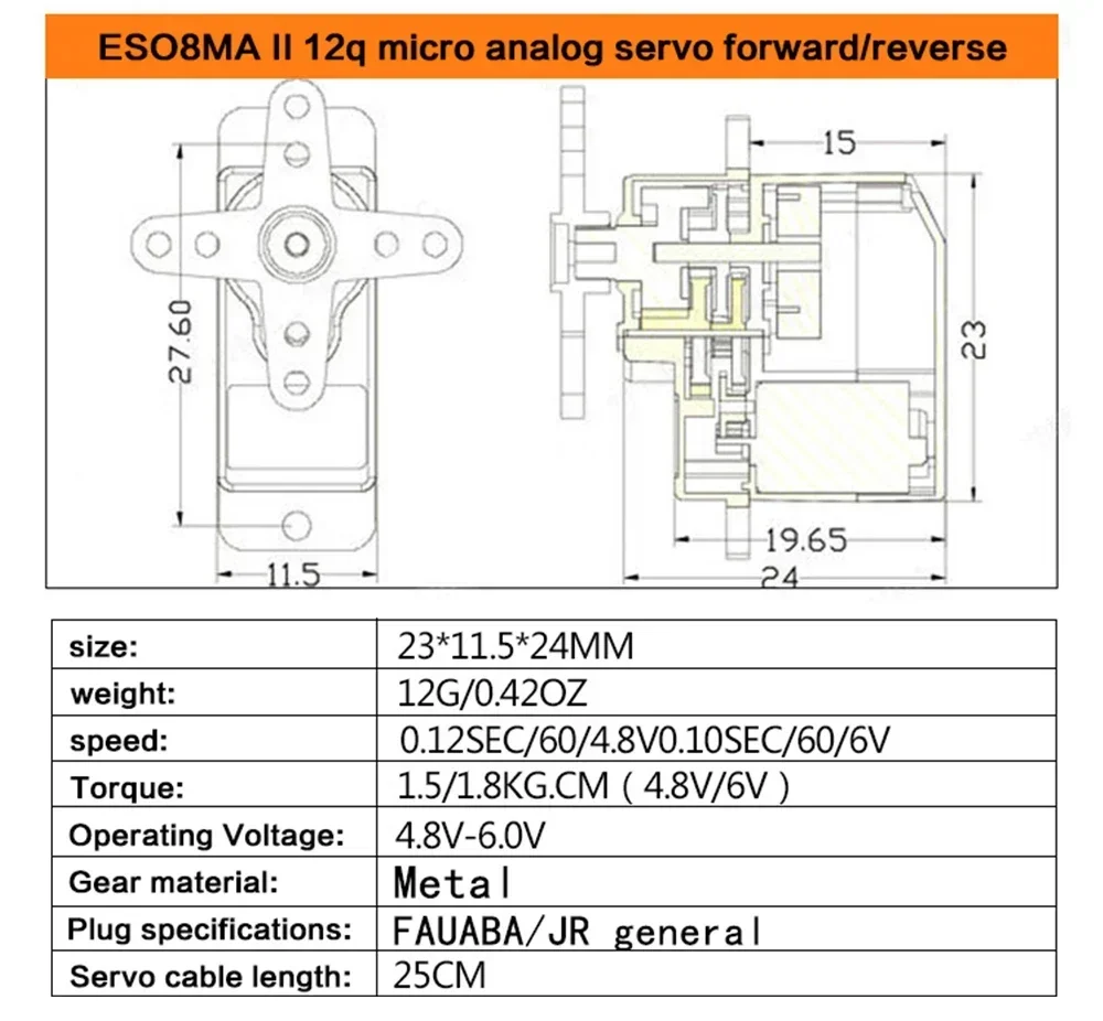 Note: ES08A is a plastic gear ES08MA ES08MD is a metal gear