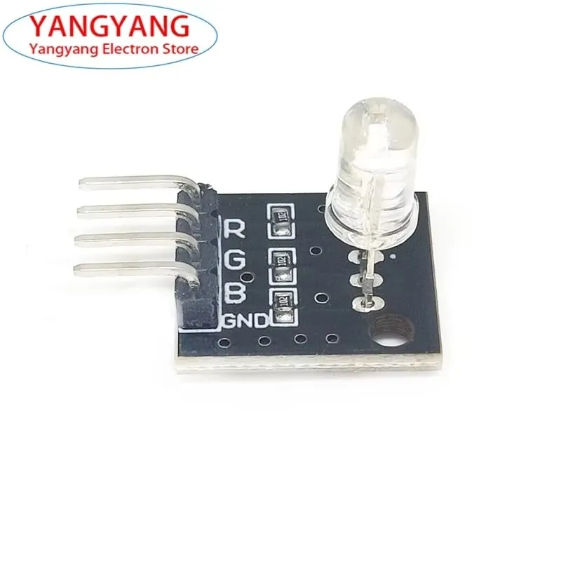 Overview:RGB LED module made from a plugin full-color LED, through the R, G, B three pin PWM voltage input can adjust the three primary colors (red/blue/green) strength so as to realize full color melange effect.With the Arduino module can realize the control of cool lighting effects.Second, the product parameters:Product Features:1. The use of plug-in full-color LED2. The RGB tricolor current-limiting resistance to prevent burn out(3) is obtained by PWM adjusting three primary colors can mix di