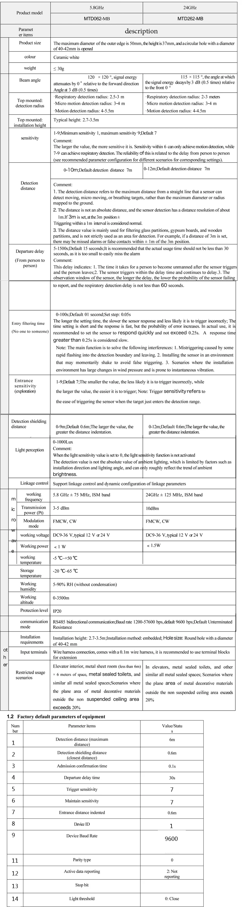 1Pcs Human Presence Detector 5.8/24G Microwave Sensor RS485 Output Life Being Sensor Home Smart Control