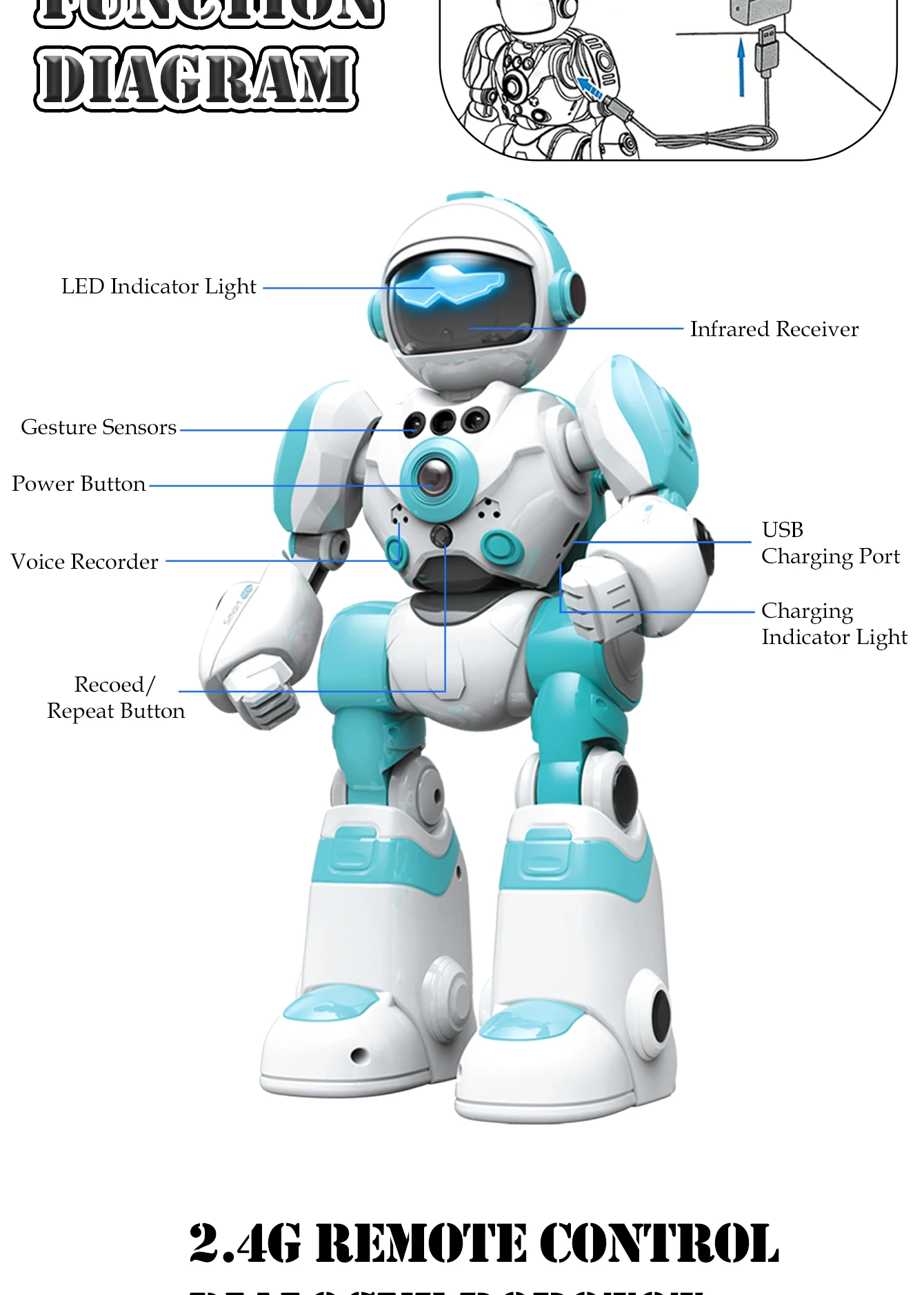 2.4G Remote Controlled Robot, Intelligent Programming Gesture Sensing, Dancing Singing Puzzle Toys Excluding regular batteries