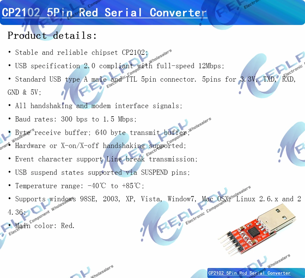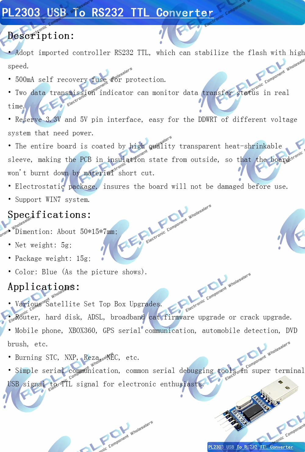 3pcs/lot =1PCS PL2303HX +1PCS CP2102 +1PCS CH340G USB TO TTL for arduino PL2303 CP2102 5PIN USB to Uart TTL Module With Cable
