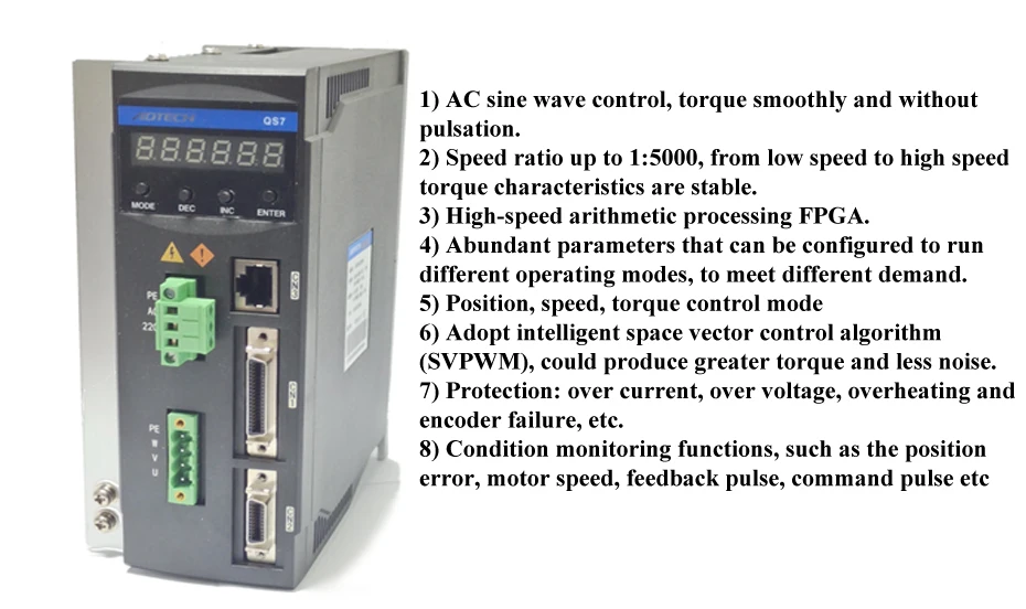 7) Protection: over current, over voltage, overheating and encoder failure, etc.