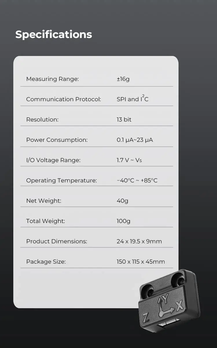 Creality Official Ender 3 V3 KE G-Sensor ADXL345 Vibration Compensation Sensor for Ender 3 V3 KE PrinterOnly fits for Creality Ender 3 V3 KE 3D PrinterPrecise Sensing ControlReducing RingingMust-have for Perfect WorksADXL345 Vibration Compensation Sensor is used to measure the ringing frequencies of the X-axis and Y-axis of the 3D printer.It inputs the data as resonance compensation parameters into the Creality OS to reduce ringing marks and improve printing quality