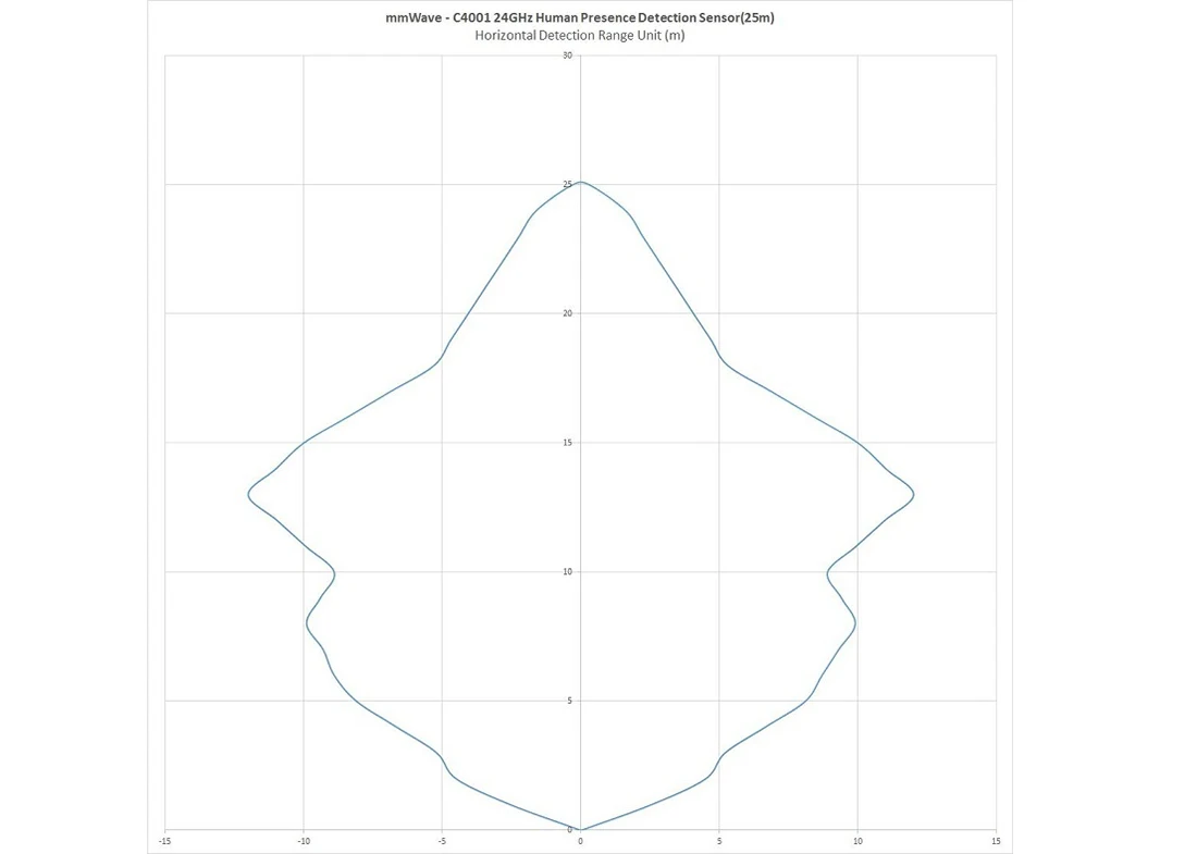 The C4001 millimeter-wave presence sensor utilizes a wavelength signal of 24GHz. It has a detection range of 100° horizontally, with a presence detection range of 16 meters and a motion detection and distance measurement range of 25 meters. It is suitable for human presence detection, environmental monitoring, and real-time monitoring projects.