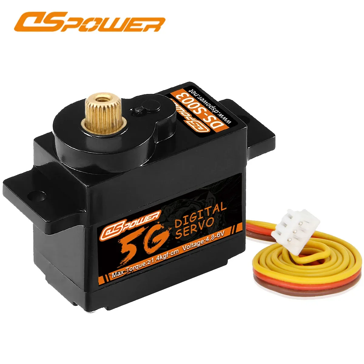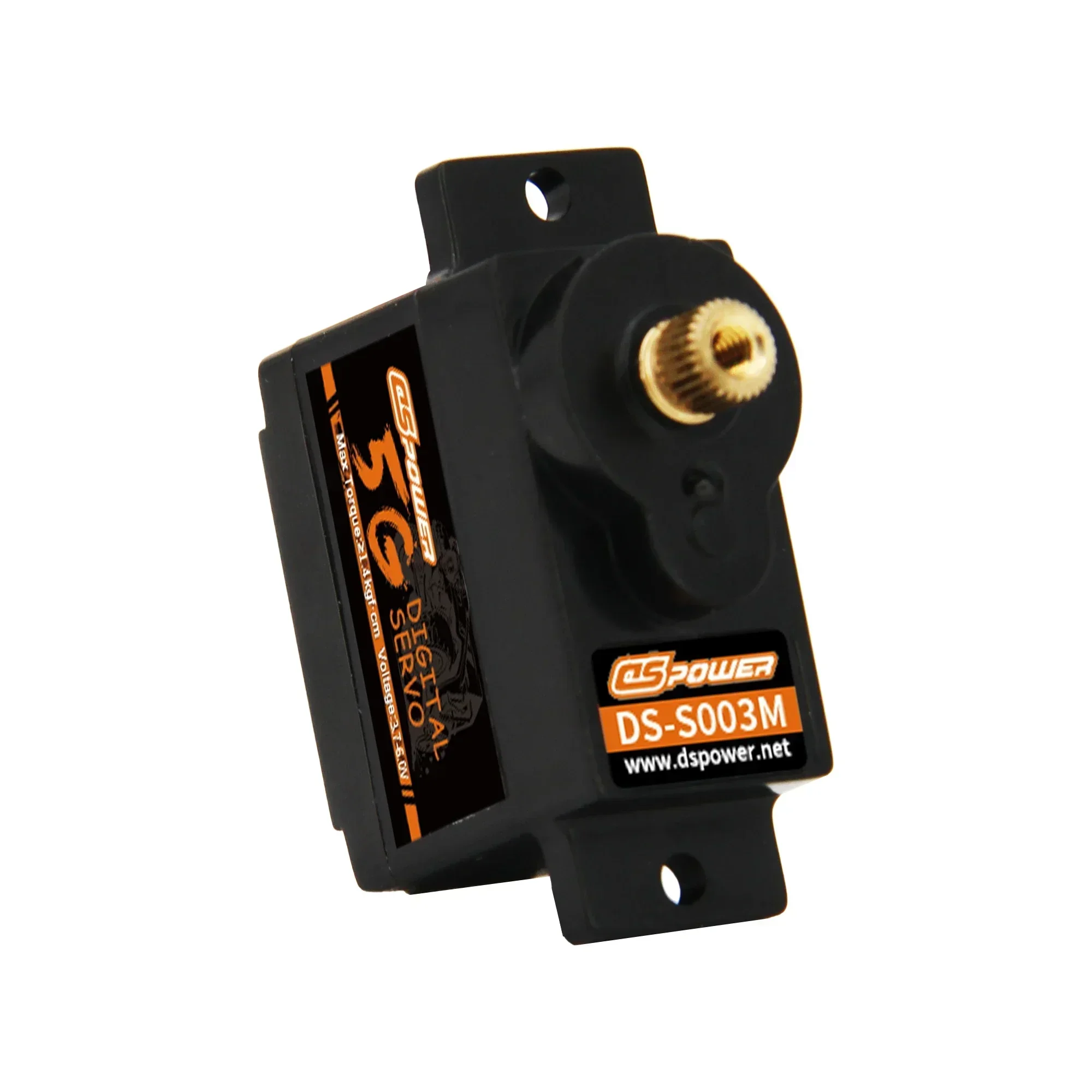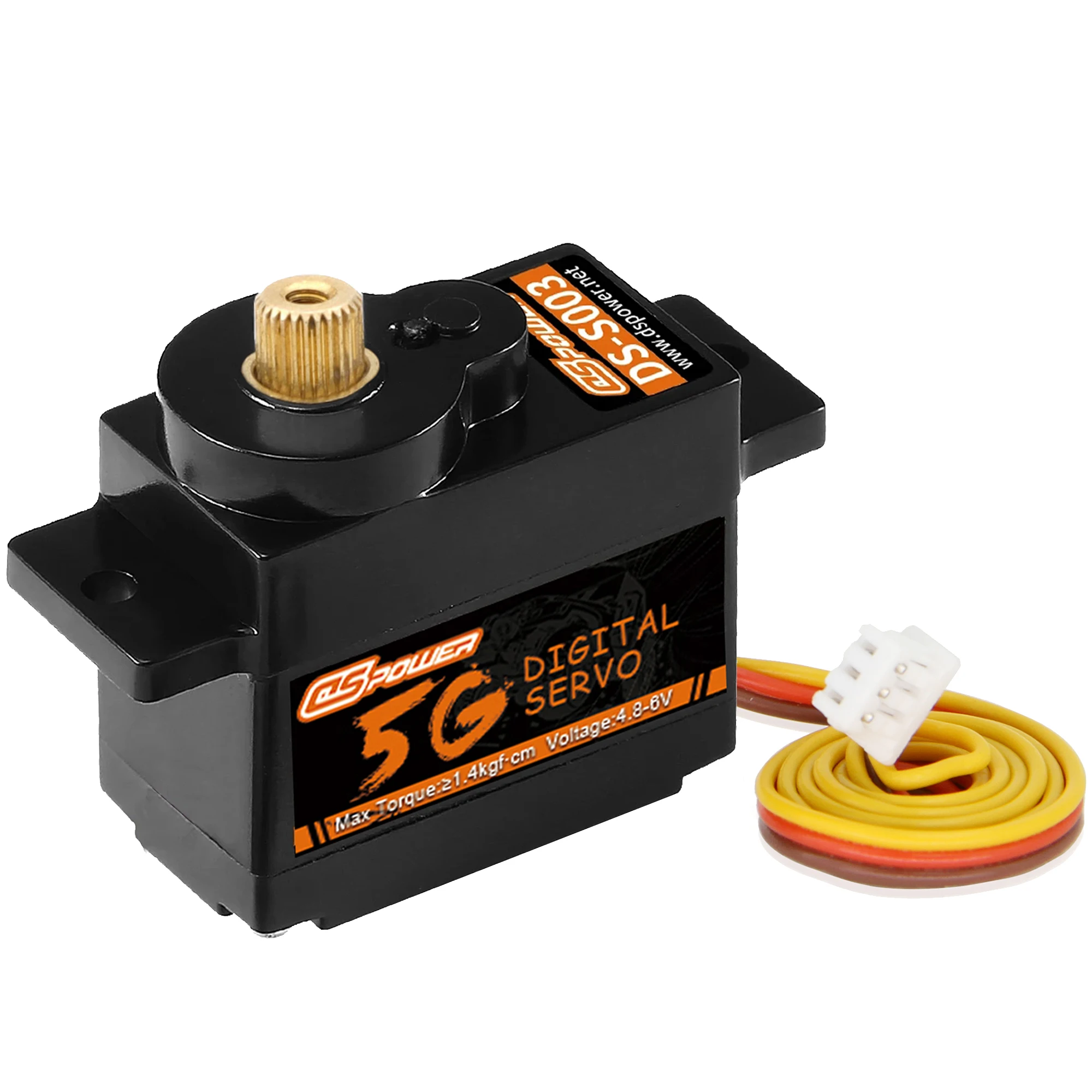 DSpower 5g Micro Digital Servo Mini Servos plastic/Metal Gear Motor for RC Car WLtoys k969 k989 k999 Mini Q Airplane ROBOTItem name: DSpower S003Quantity: 1pcsOperating Voltage : 4.8~6.0V DCMax. Torque : 4.8V≥0.80kgf·cm ; 6.0V≥0.85kgf·cmNo Load Speed : 4.8V≤0.08sec/60°; 6.0V≤0.07sec/60°Stall Current:4.8V≦800mA;6.0V≦950mAConsumption Current* (No Load):4.8V ≦100mA ;6.0V≦110mAMax. Operating Travel Angle:90°±10°(1000~2000μs)Dead Band Width: ≤ 3 usMechanical Limit Angle: 210°Communication Interface: