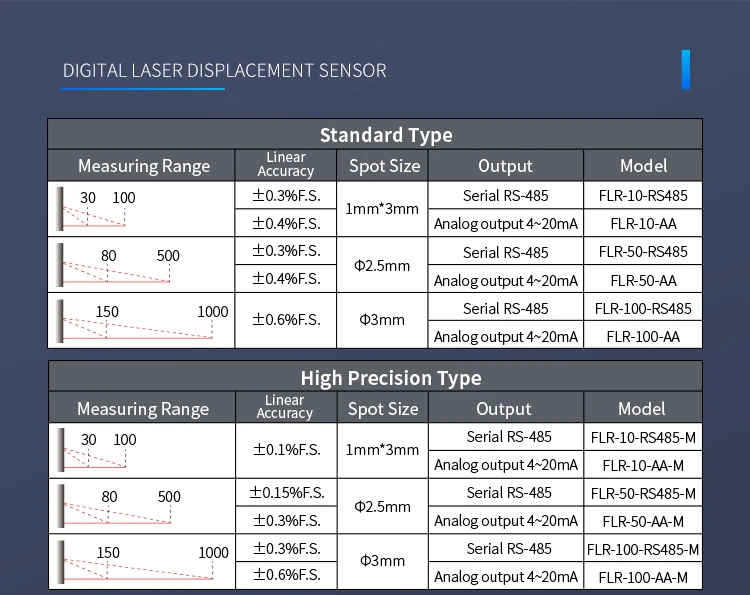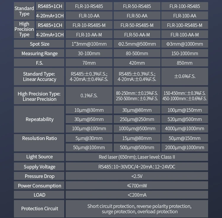 Fuwei Flr 100 Rs485|Fuwei Flr 100|High Accuracy:Achieve precise measurements with ±0.3% F.S. linear accuracy (150-450mm) and ±0.6% F.S. (450-1000mm) for reliable data.