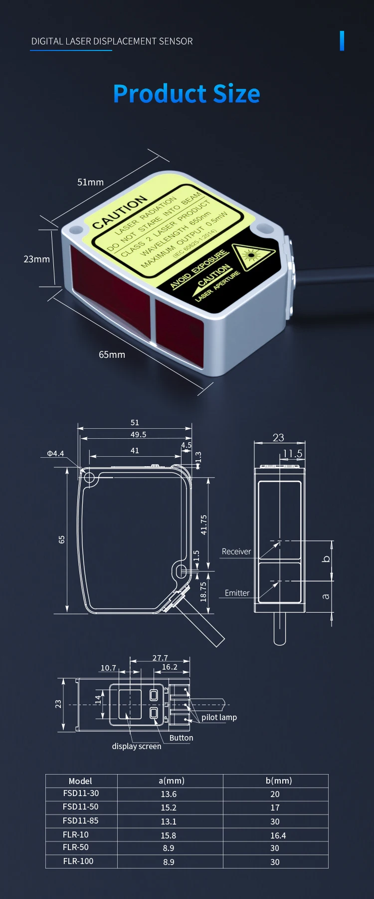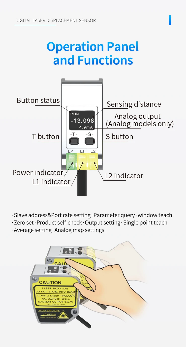 FSD11-30-RS485-M high precision digital display measuring thickness flatness ModBus laser displacement distance measuring sensor