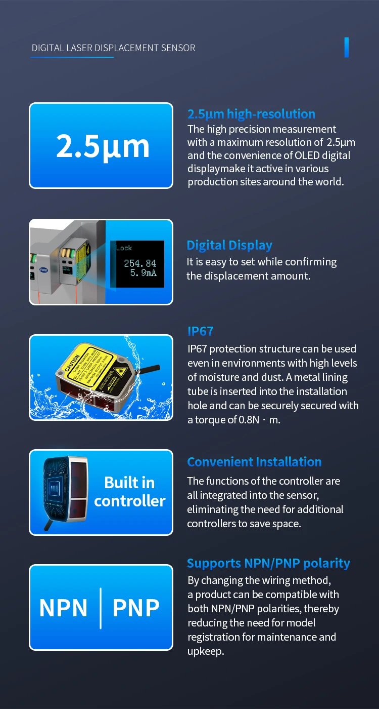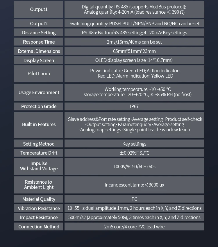 Wide Measuring Range:Monitor distances from 150mm to 1000mm, making it suitable for a variety of applications.
