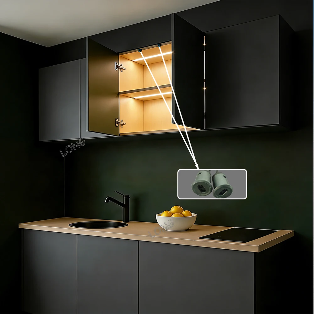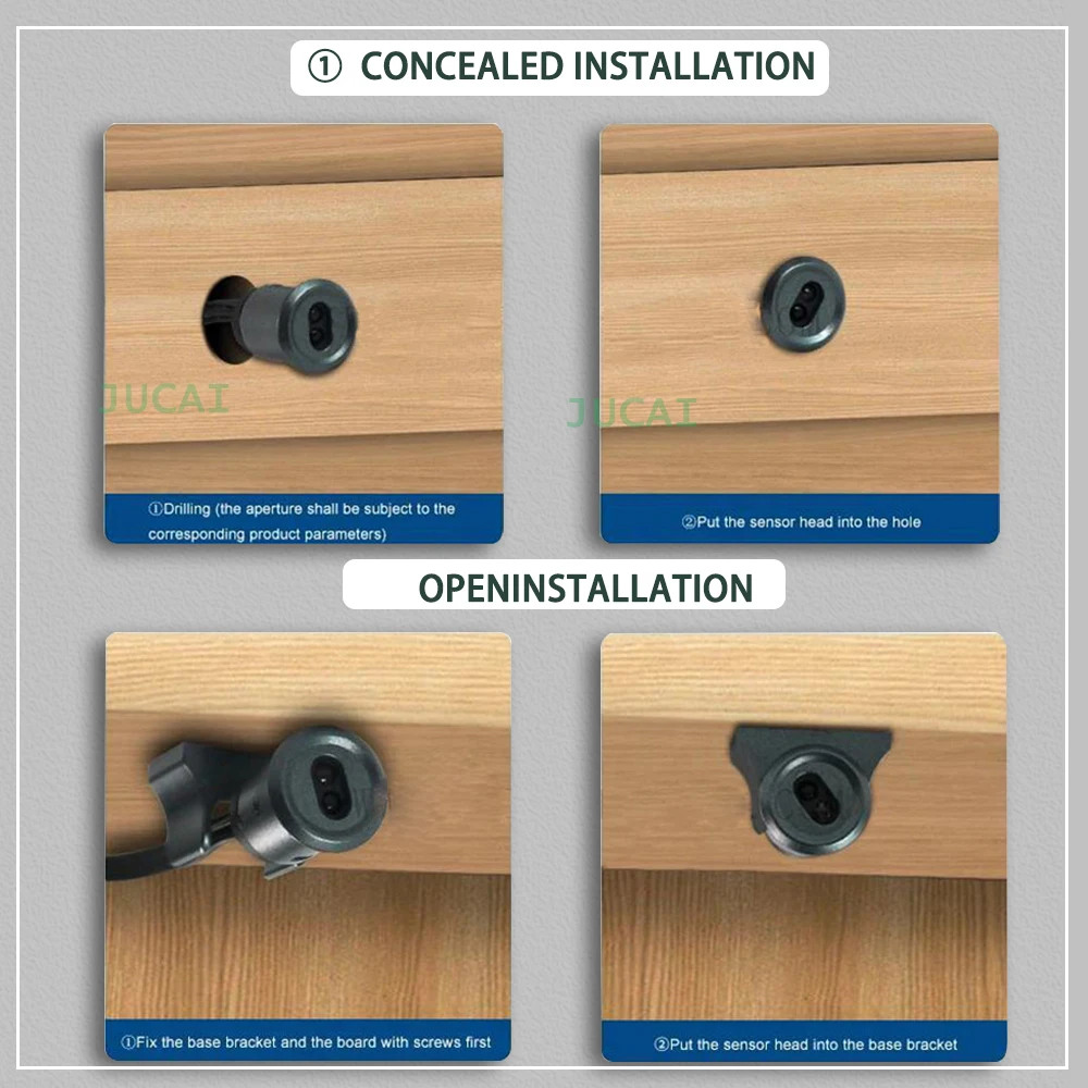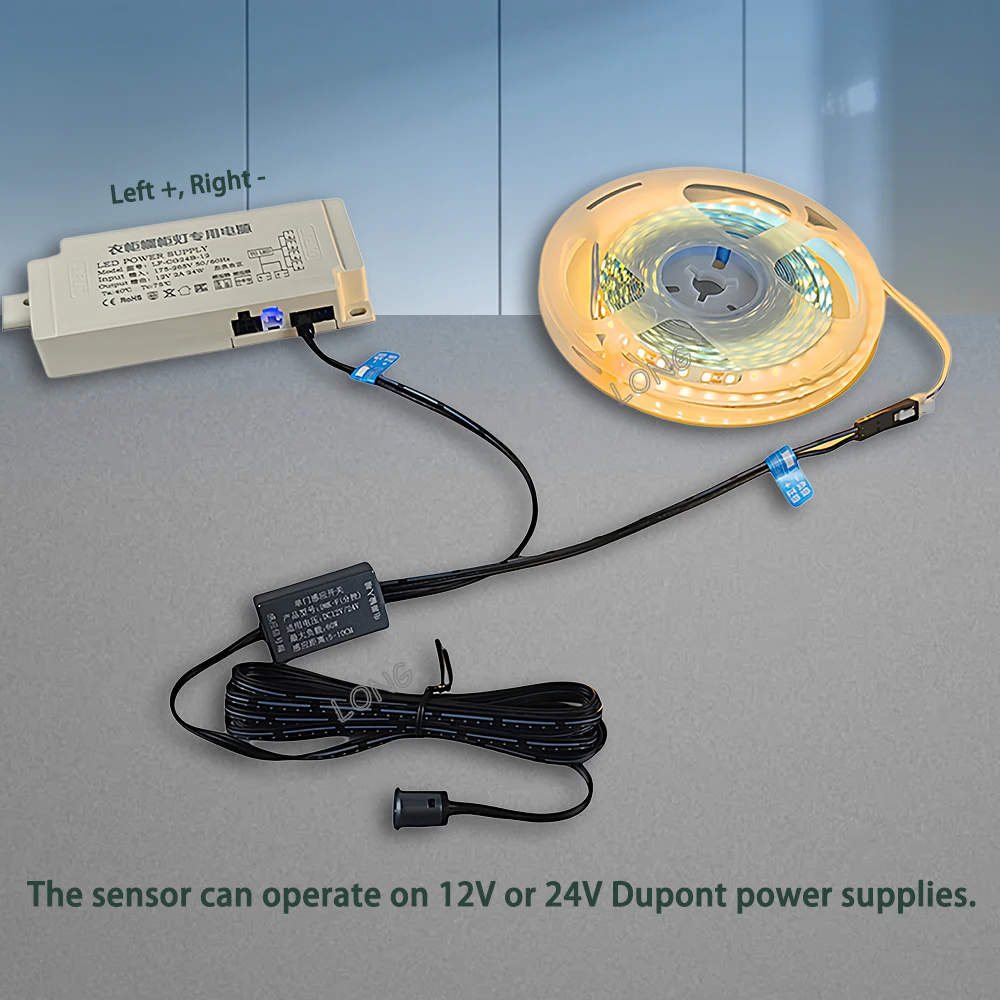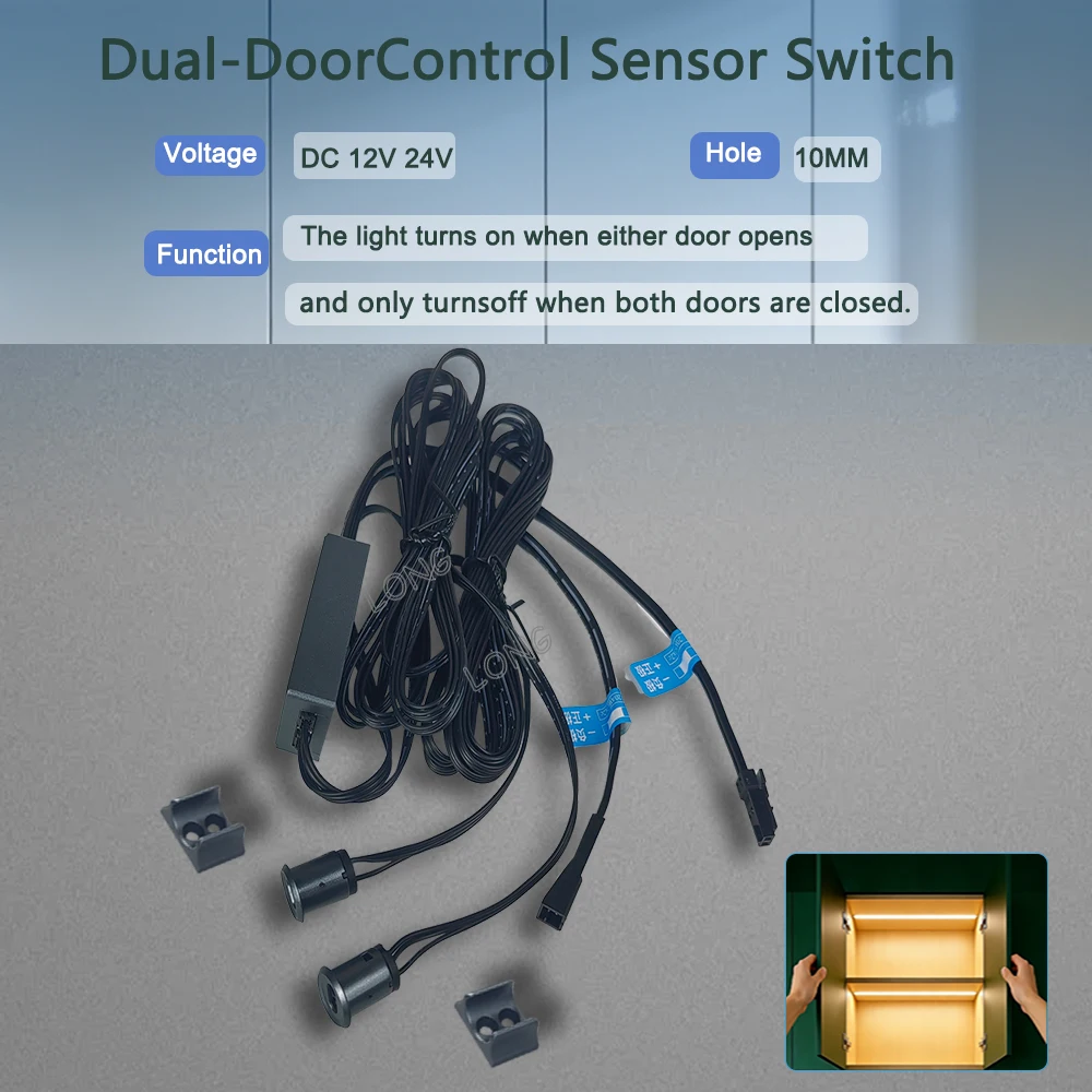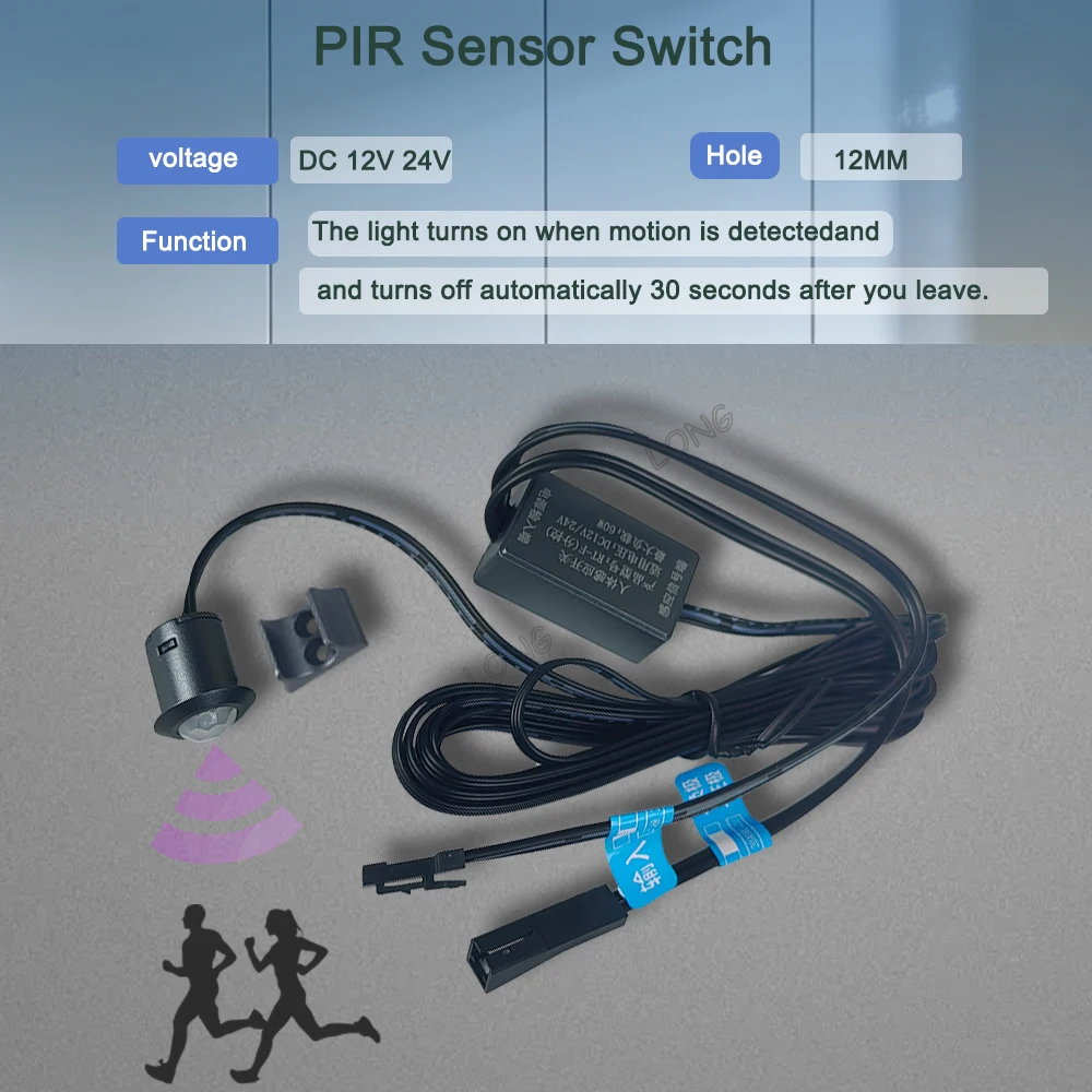 Hand sweep sensor Switch■Working voltage:12V-24V DC■Rated Current:5A■Rated Power:≤60W■Sensing distance:5-10cm■Function: Sweep Wave your hand to turn on the light,then wave your hand to turn off the light.Long press to continuously adjust the brightness6. Hole:10mmSingle-door Sensor Switch■Working voltage:12V-24V DC■Rated Current:5A■Rated Power:≤60W■Function: The door opening light is on, the door closing light is off■If need open hole:10mmTouch Sensor Switch■Working voltage:12V-24V DC■Rated Curr