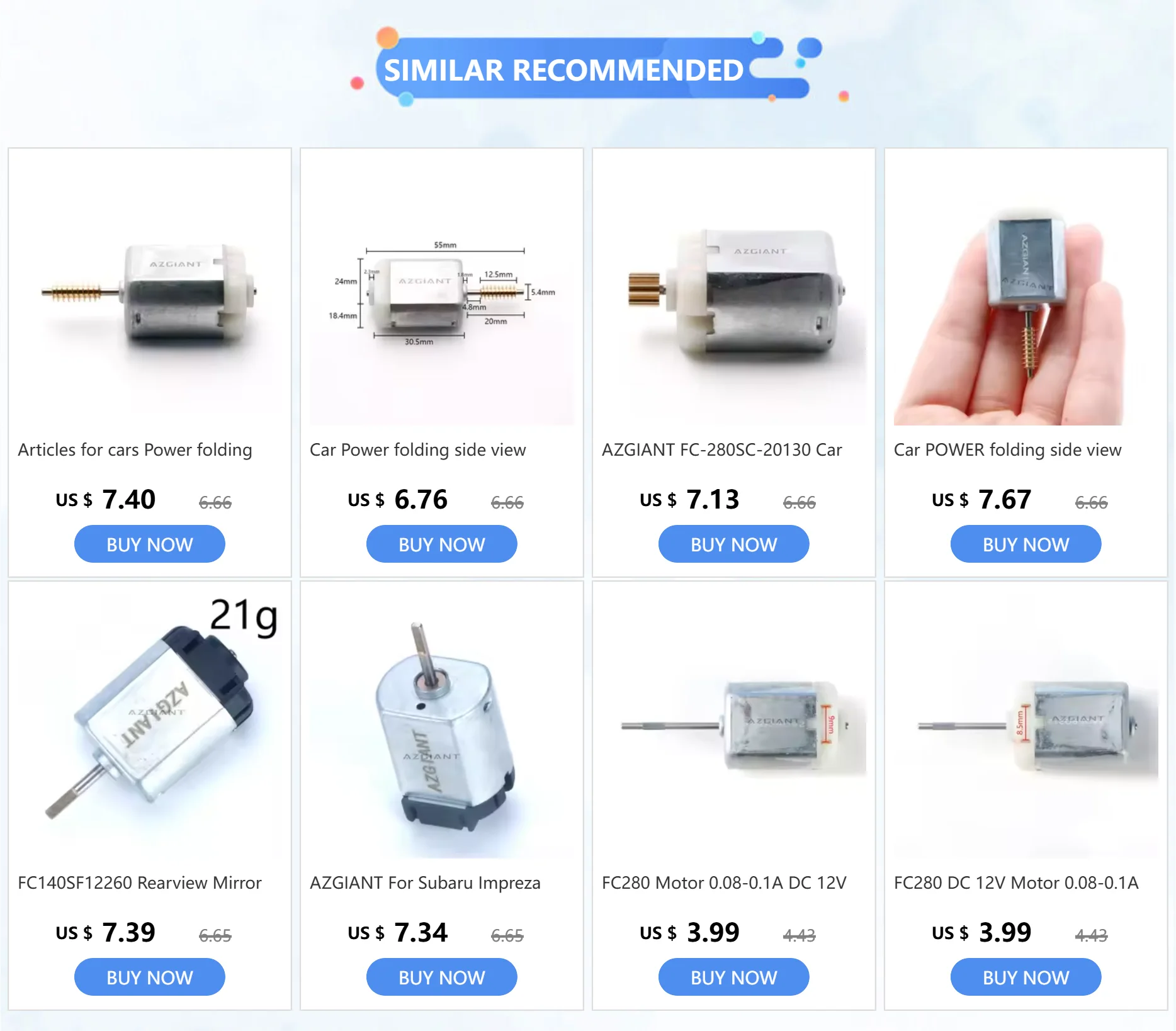 (855) I-BUY-ROBO (855) 428-9762Motors FC280 12V 0.15A Reverse About 15000 rpm 48 mm DC carbon brush Knurled shaft replacement DIY car fan KIT new dropshipping