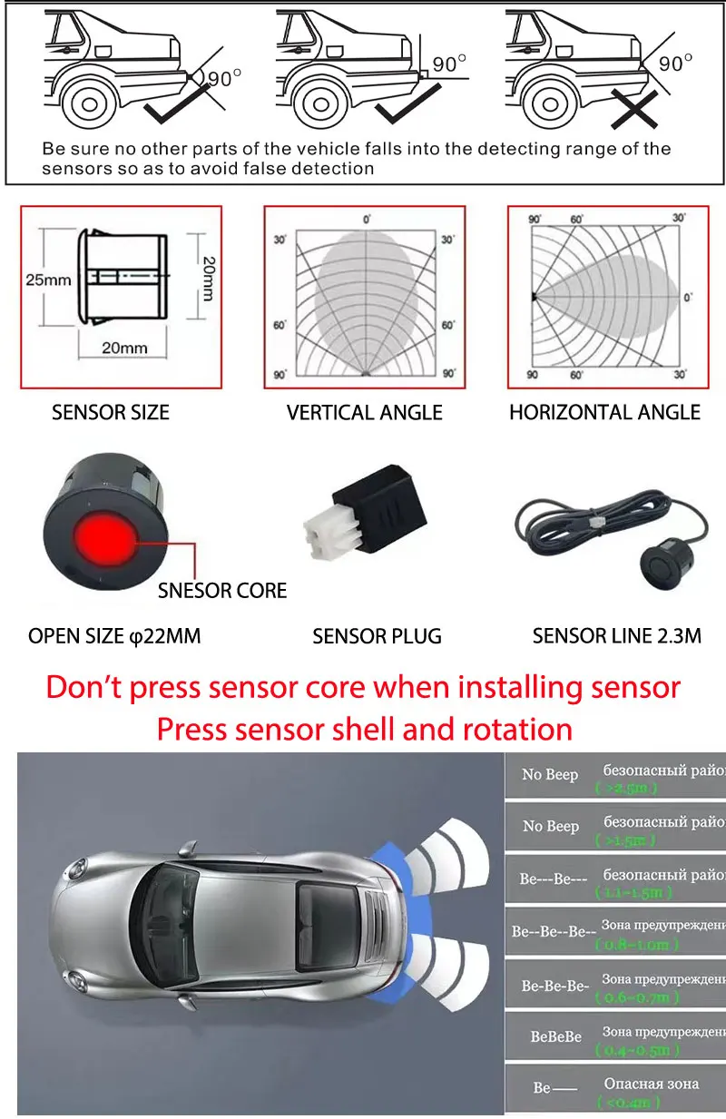 Parking Sensor Assistant Parktronics 12 Colors 22mm Flat Sensor Reverse Radar Buzzer Sound Alarm
