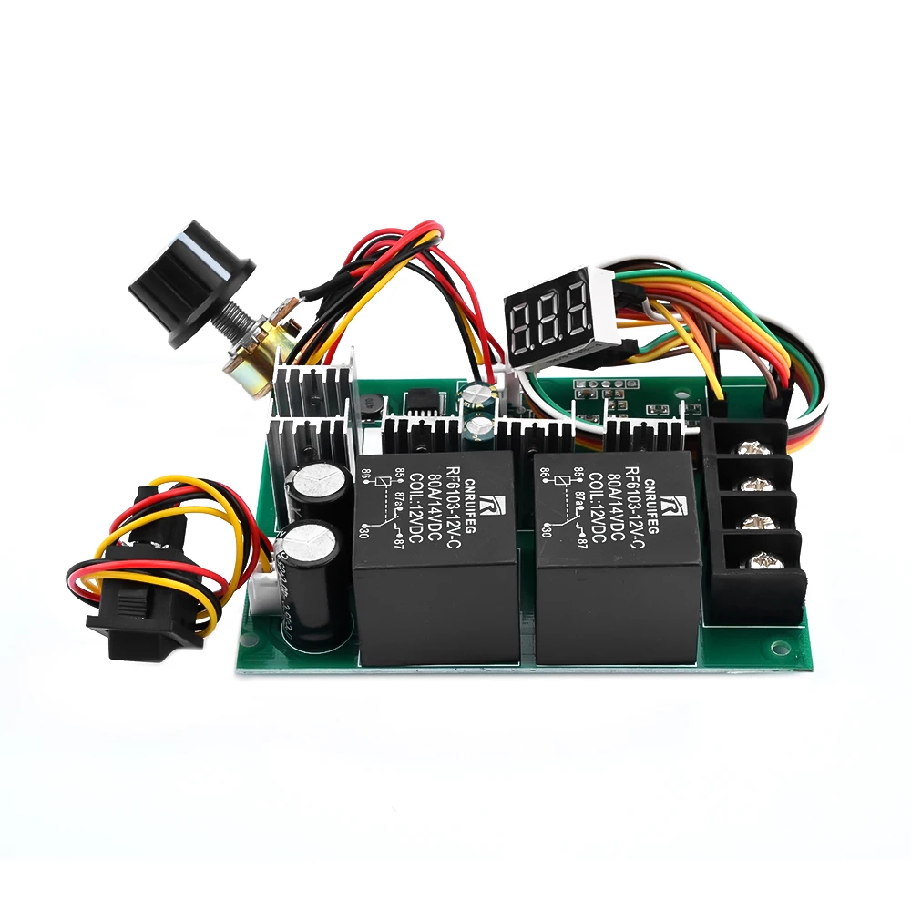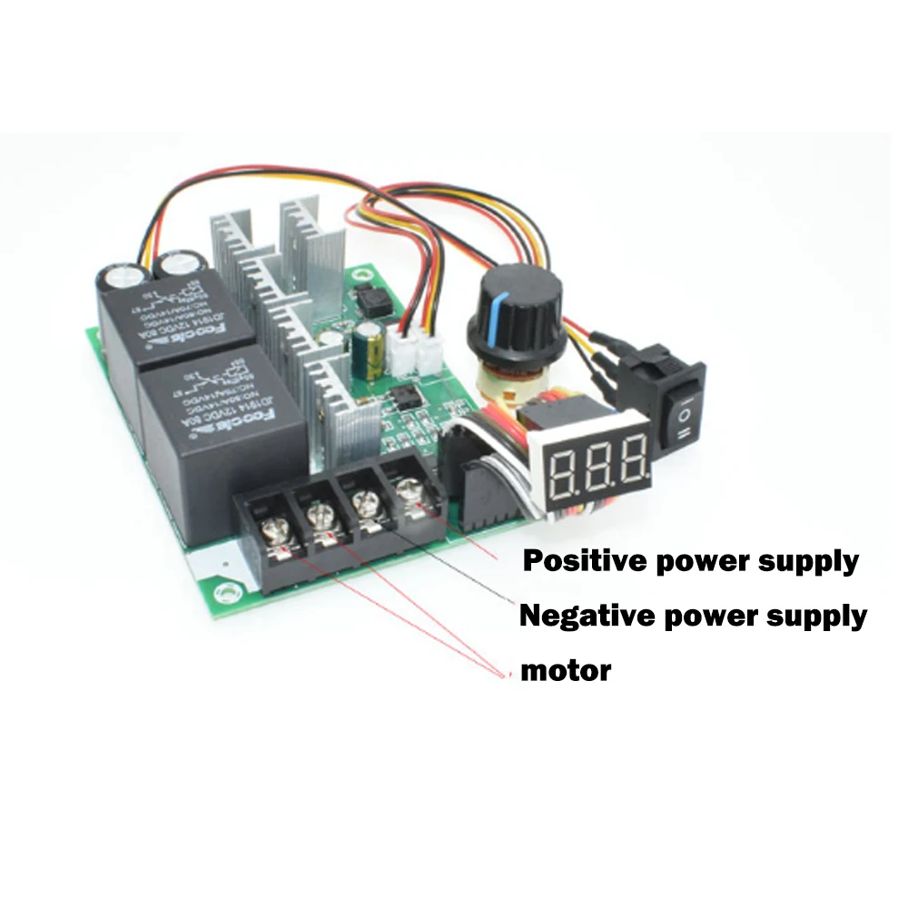 PWM DC Motor Speed Controller DC10-55V Digital Display 0~100% Adjustable Drive Module Input MAX 60A 12V 24V 36V 48VSpecification:Input voltage: DC 10-55V (equal to the rated voltage of the motor)Output voltage: linear under loadMaximum current: 60AContinuous current: 40ASpeed regulation type: current regulationSpeed regulation mode: potentiometer (linear)Support motor: DC brush motorForward rotation reverse: SupportSpeed range: 0 -100%Control frequency: 15KHzWiring type: terminal KnobSpecificati