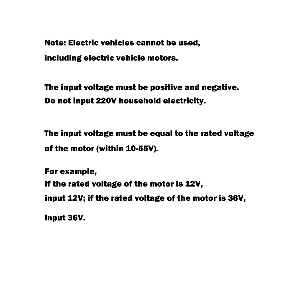 The input voltage should be equal to the rated voltage of the motor (within 10-55V)