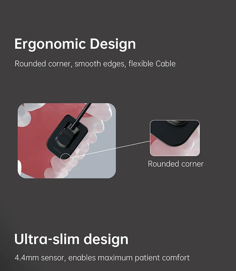 Features for dental x ray sensor:1.If there’s only one device, you may select “Single-User” installation. If the sensor is connected to multiple device, select “Host” for the device connected with the sensor and other devices select “Extension” to install, to achieve multi-machine sharing2.The sensor is available in two sizes, with rounded corners and a thickness of only 4.4mm, making it more comfortable to use.3.Cables are durable,have been tested for 80,000+ bends.4.CMOS detector technology wi