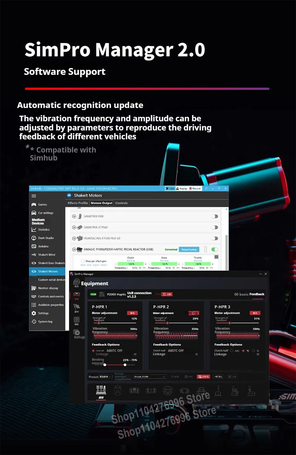 - Simagic P2000 Pedals: Exclusively designed for use with the P2000 pedal set.