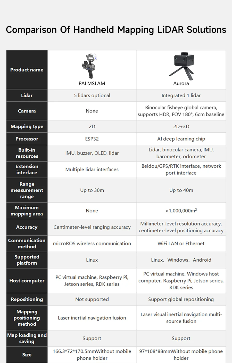 Slamtec Aurora Integrated Lidar Binocular Vision IMU Camera Kit 40 Mscanning Distance 3D All-round Positioning Mapping SensorA New Era of Mapping and Localization solution.Aurora is an integrated positioning and mapping sensor that integrates LiDAR, binocular vision, inertial navigation (IMU) and AI deep learning technology, with highly integrated 3D perception capabilities. Aurora can achieve high-precision indoor and outdoor 3D mapping as soon as it is turned on, without external dependencies,