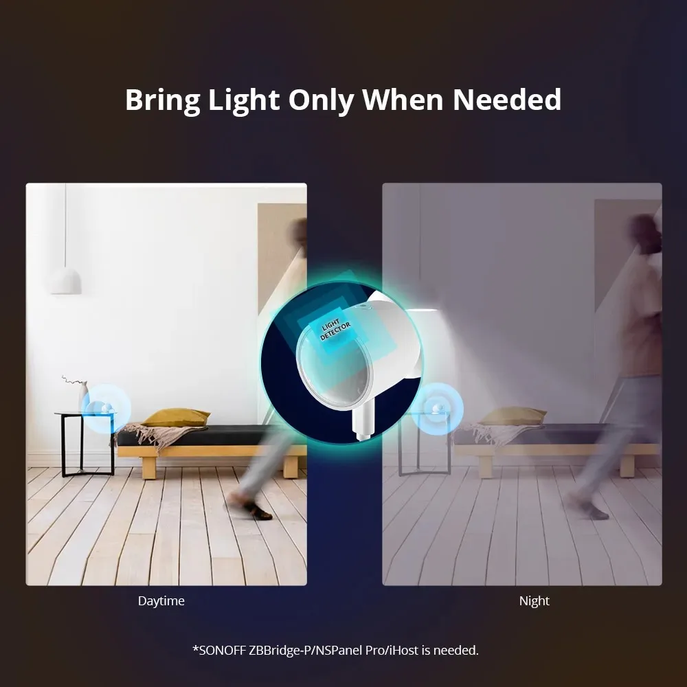 SONOFF SNZB-06P Zigbee Human Presence Sensor 1-10PCS 5.8GHz Microwave Radar Smart Scene ZBBridge-P eWeLink Alice Alexa GoogleSONOFF SNZB-06 Zigbee Human presence sensor, based on 5.8GHz microwave radar, detects movement or stationary person, it can detect the tiniest movement, even breathing and heartbeat, and seamlessly light up your space with intelligent radar. SNZB-06P built-in light detector ensures that lights are activated only when a presence is detected in dark environments, helping you