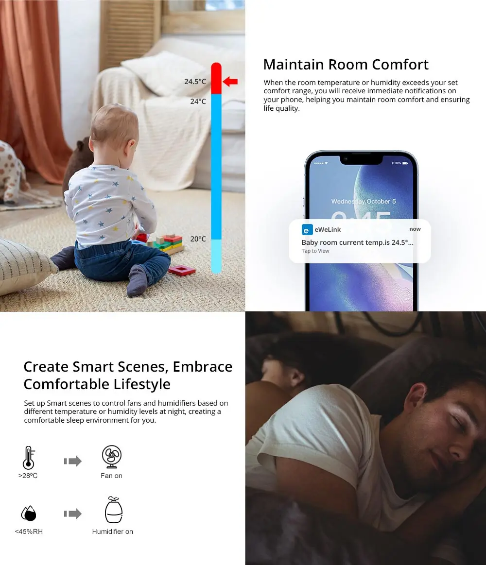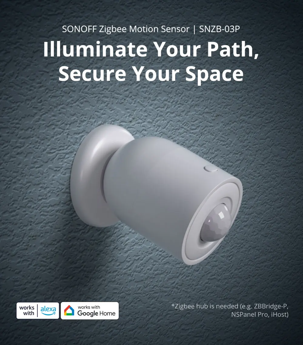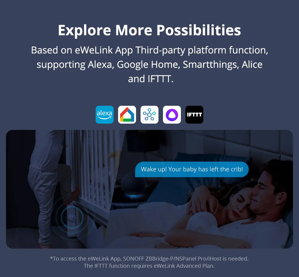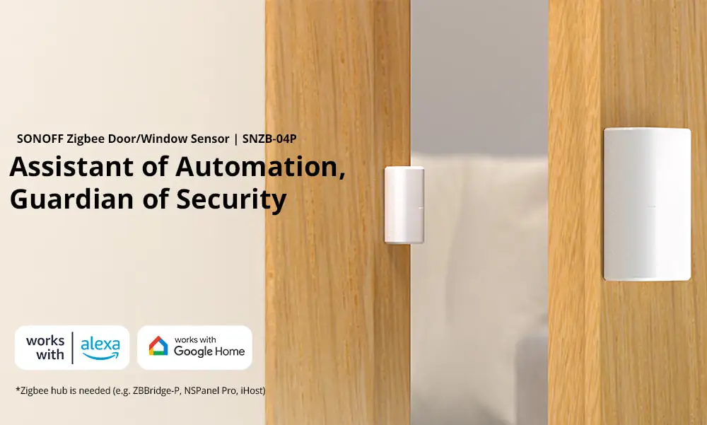 SONOFF S26R2ZB smart plug, SONOFF Zigbee wireless switch, and sensors like temperature and humidity sensor-SNZB-02, motion sensor-SNZB-03, and wireless door/window sensor-SNZB-04 can be connected with the Zigbee Bridge Pro to give you more possibility to create various scene linkages. It can also command Alexa, Google Assistant and SmartThings to voice control your home.