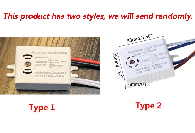 This sensor is in dormant state when in lighting environment, for example in daytime.Can be controlled by any sound and it will working In the dark environment, for example in night.If the sensor feel sound, the controlled lamp will be light about 45s.Fine workmanship and stable performance.Automatic control, save energy.High sensitivity, practicability.Durable in use.Used in corridor, bathroom, warehouse, stair etc.Specification:Product Name: Sound Sensor SwitchSensitivity to light :darkenessPr
