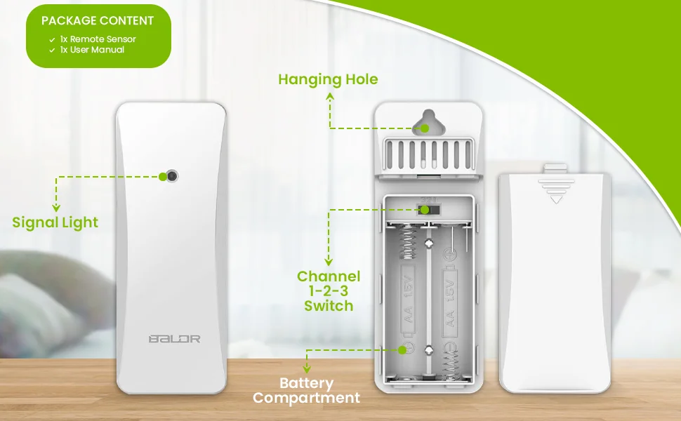 EXTRA SENSOR: This is the perfect extra mini weather station for your BALDR weather station. Take advantage of all three (3) available channels offered by our home weather station with an extra sensor.