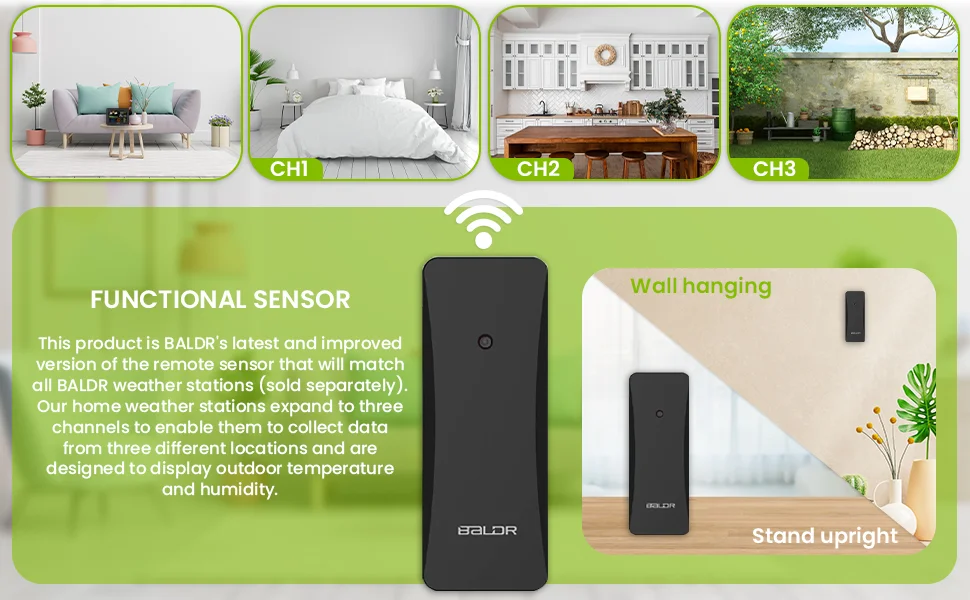 FUNCTIONAL SENSOR: This product is BALDR's latest and improved version of the remote sensor that will match all BALDR weather stations (sold separately). Our home weather stations expand to three (3) channels to enable them to collect data from three (3) different locations and are designed to display outdoor temperature and humidity.