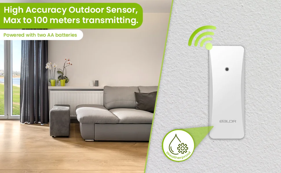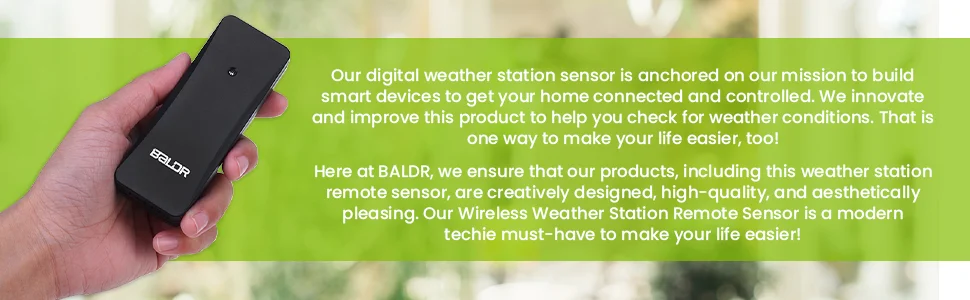 FUNCTIONAL SENSOR: This product is BALDR's latest and improved version of the remote sensor that will match all BALDR weather stations (sold separately). Our home weather stations expand to three (3) channels to enable them to collect data from three (3) different locations and are designed to display outdoor temperature and humidity.WEATHERPROOF: Our outdoor weather station sensor was carefully designed and expertly crafted to be weatherproof. We do recommend, however, that you place it ou
