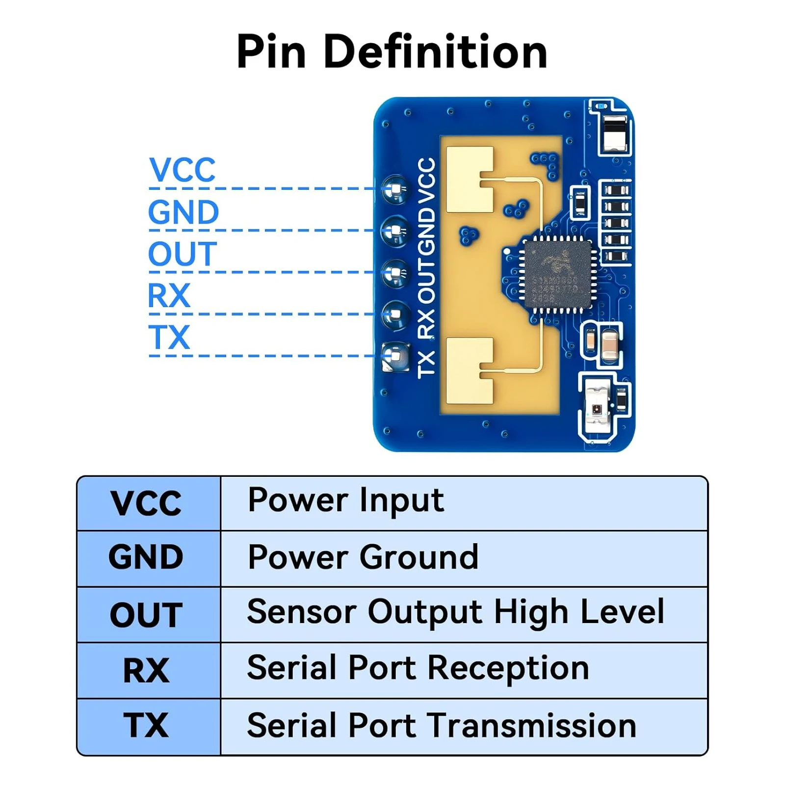 Data format: serial port ASCII output/high and low level 3.3V&0V