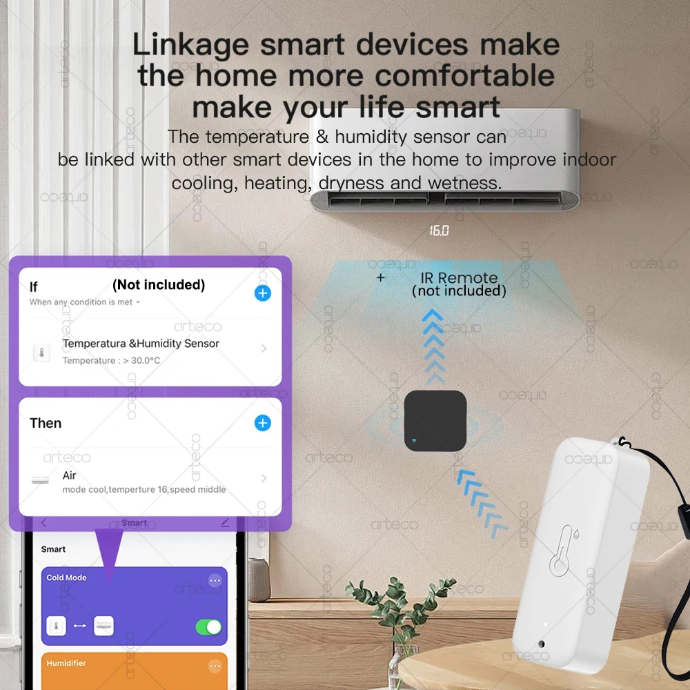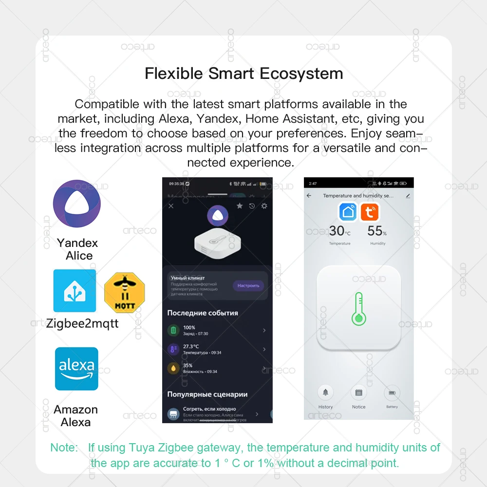 Zigbee 3.0 Temperature Humidity Sensor Thermometer Smart Life Works with Google Assistant Yandex Alice Z2M ,IP65 Waterproof+Rope