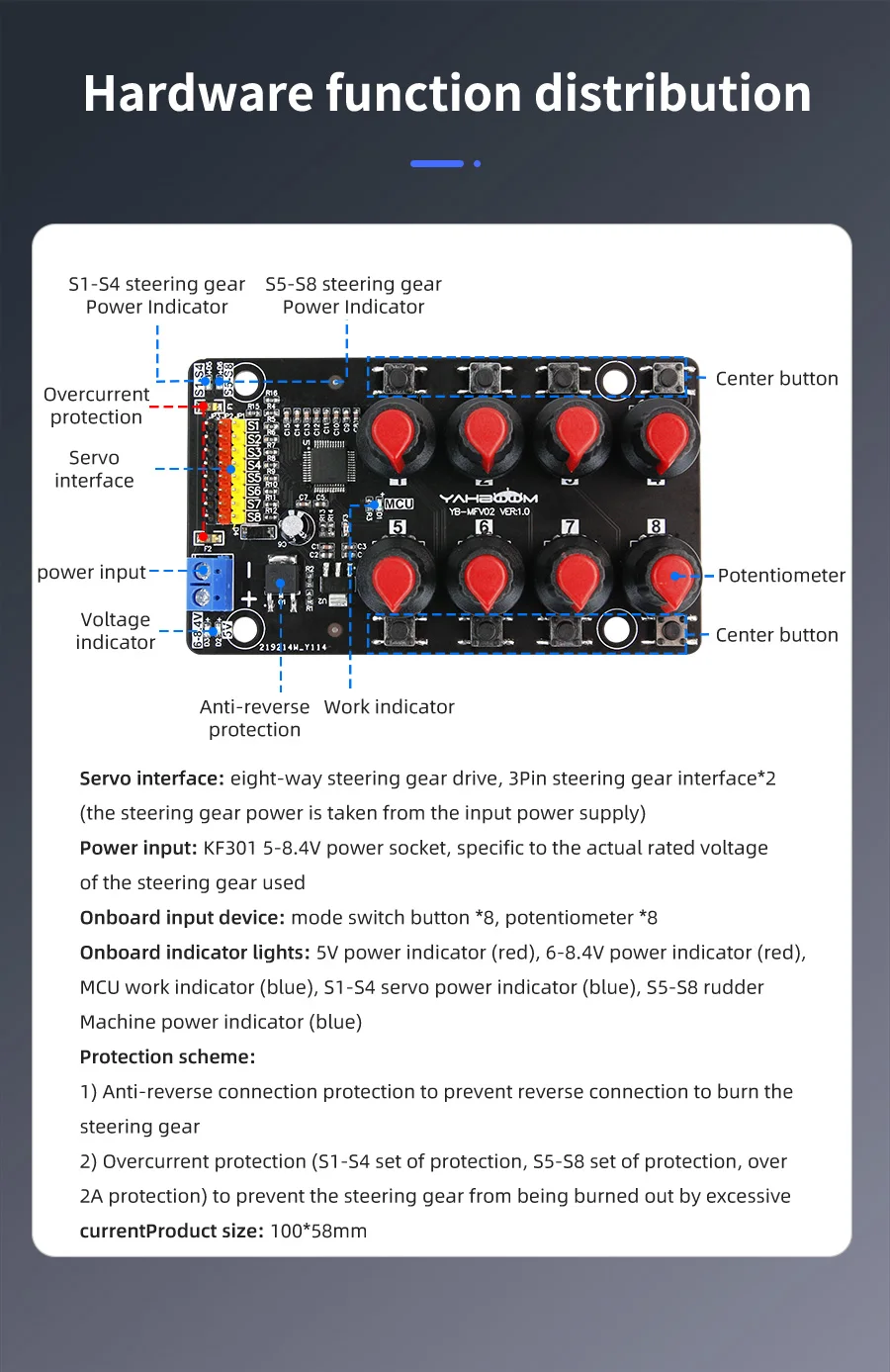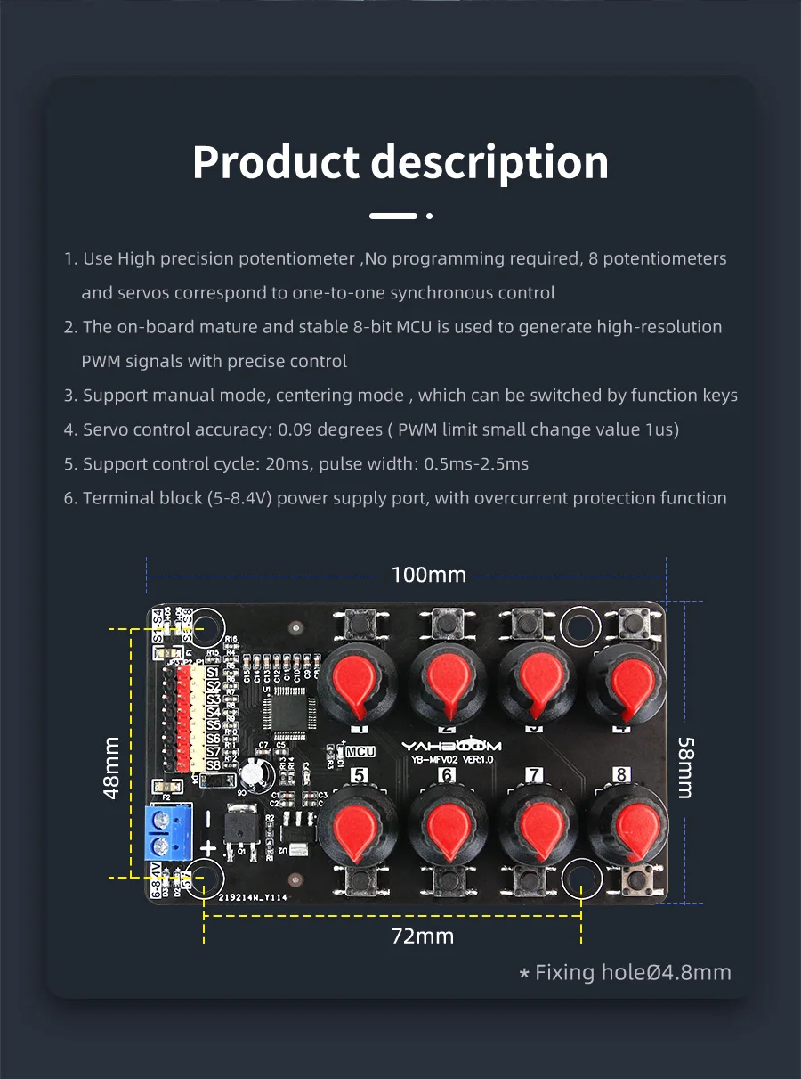 8-channel independent servo interface and 8 high-precision potentiometers