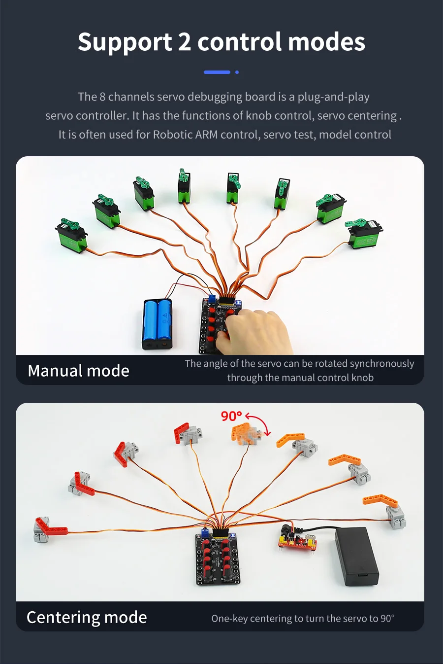 No need any codes, servo can be controlled by buttons or the adjustable knobs